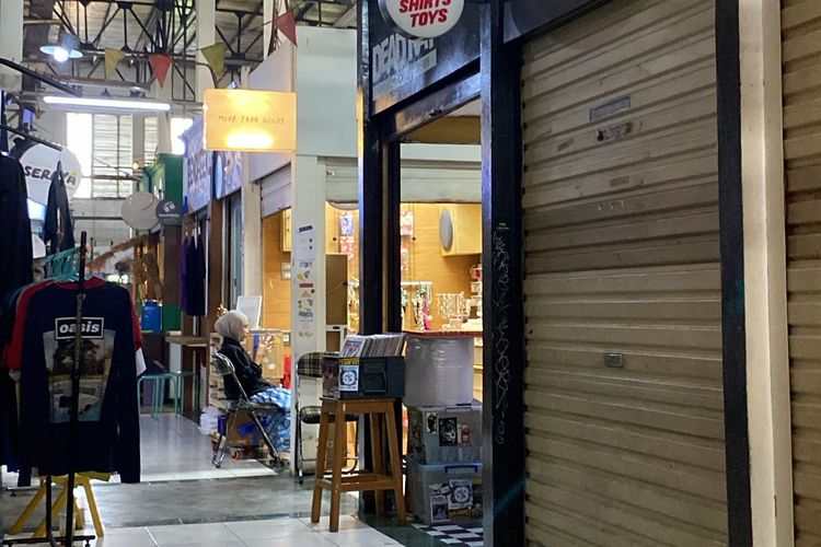iDoPress/LIDIA PRATAMA FEBRIAN Kios Action! yang menjual poster film vintage tertutup rapat, mempertegas minimnya aktivitas perdagangan di Pasar Santa Jakarta Selatan pada Selasa (21/4/2026).